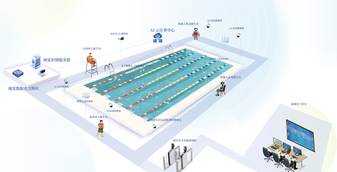 AI 防溺水系统的硬件需求取决于场地情况。一般情况下,只需在泳池安装高清监控摄像头,并配合后端的数据处理服务器或云端识别平台即可运行。对于已经建设过视频监控系统的泳池,通常只需接入现有摄像头数据即可,减少了重复投资。部分厂商还提供边缘计算方案,将识别算法直接部署在前端设备中,从而降低对网络和服务器的依赖。